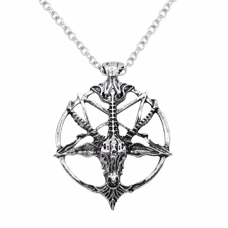Fashion Steampunk Inverted Pentagram Pan God Skull Goat Head Pendant Necklaces Satanism Satanic Occult Metal DIY Choker Necklace